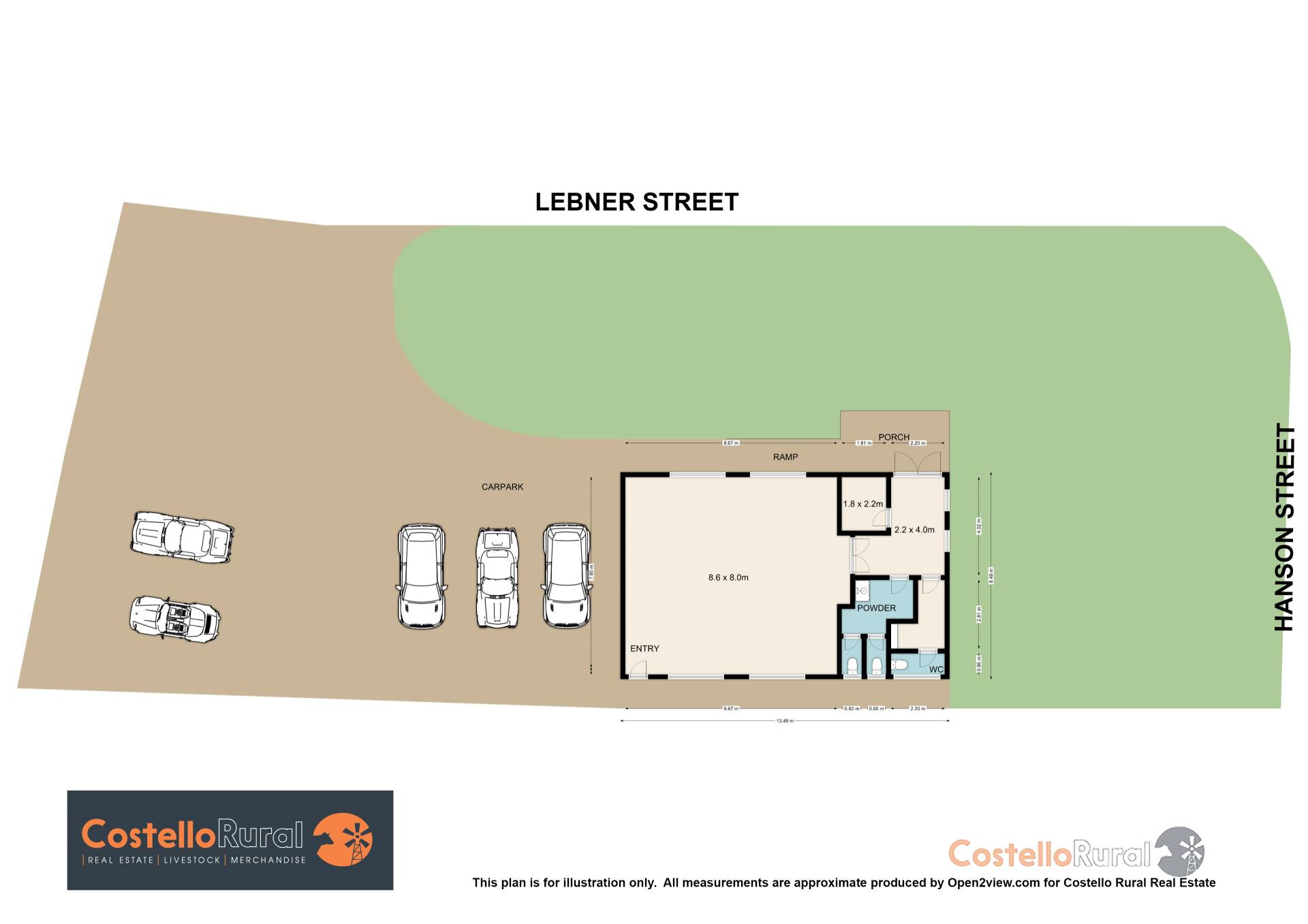 This property features are spacious open area with two separate bathrooms and small office space as you enter the hall area of the building.  A large car parking area and room to improve further
