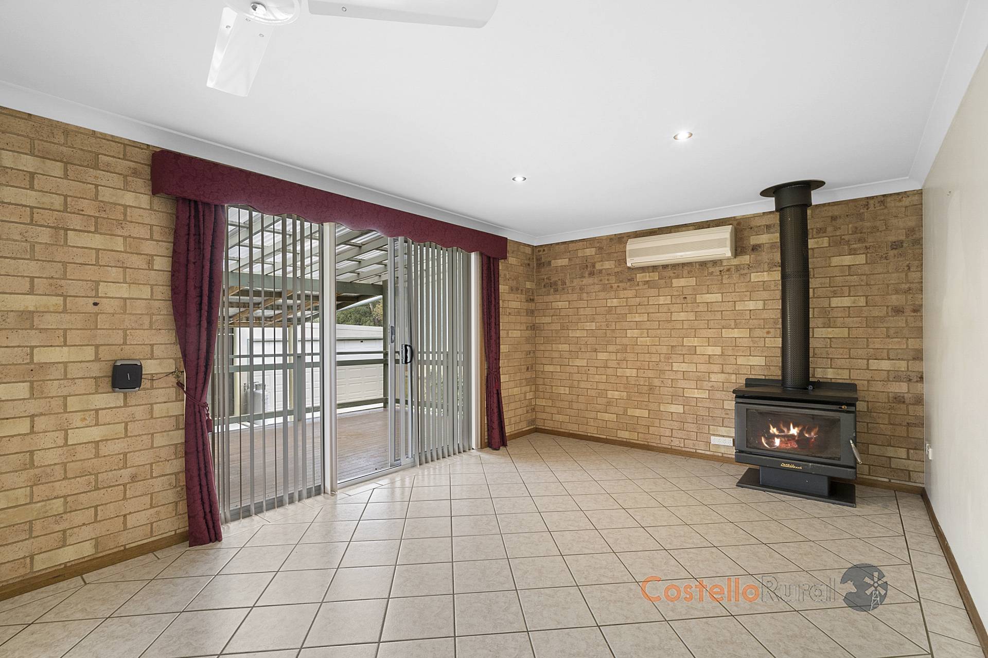 In addition, this property offers wood fire heating and split system cooling.